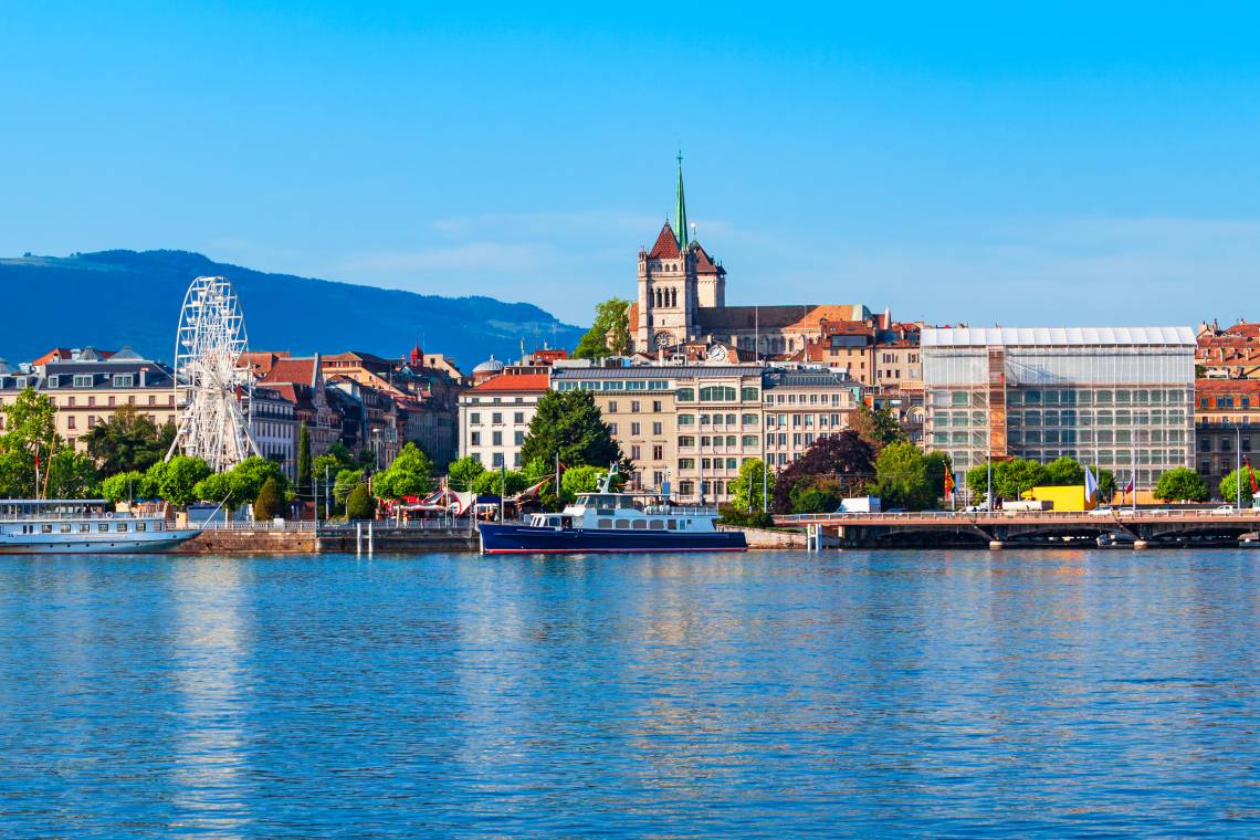 Travel by train from Bern to Geneva, a sophisticated international city located along the shores of Lake Geneva.